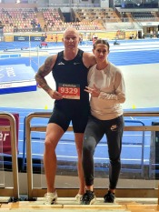 Foto: Arne Wendler und Trainerin Bianca Broda beim Hallenwettkampf in Luxemberg
