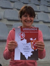 Foto/ Th.Vogl: eine strahlende Monika Sagurna nach ihrem Sieg über 3000m
